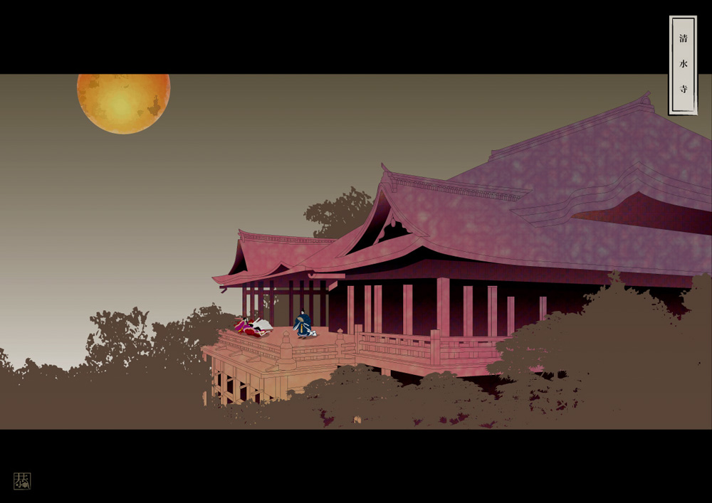 男性が月を題に詩を吟じて、女性がそれに耳を傾ける。